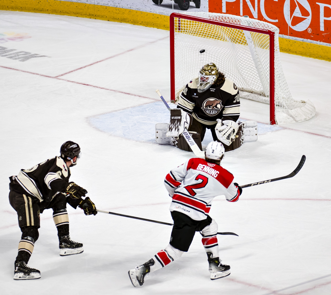 The Bears opened the scoring late in the first period, with Bogdan Trineyev finding the net just 58 seconds before intermission. His goal, assisted by Ivan Miroshnichenko and Jake Massie, gave Hershey an early edge.