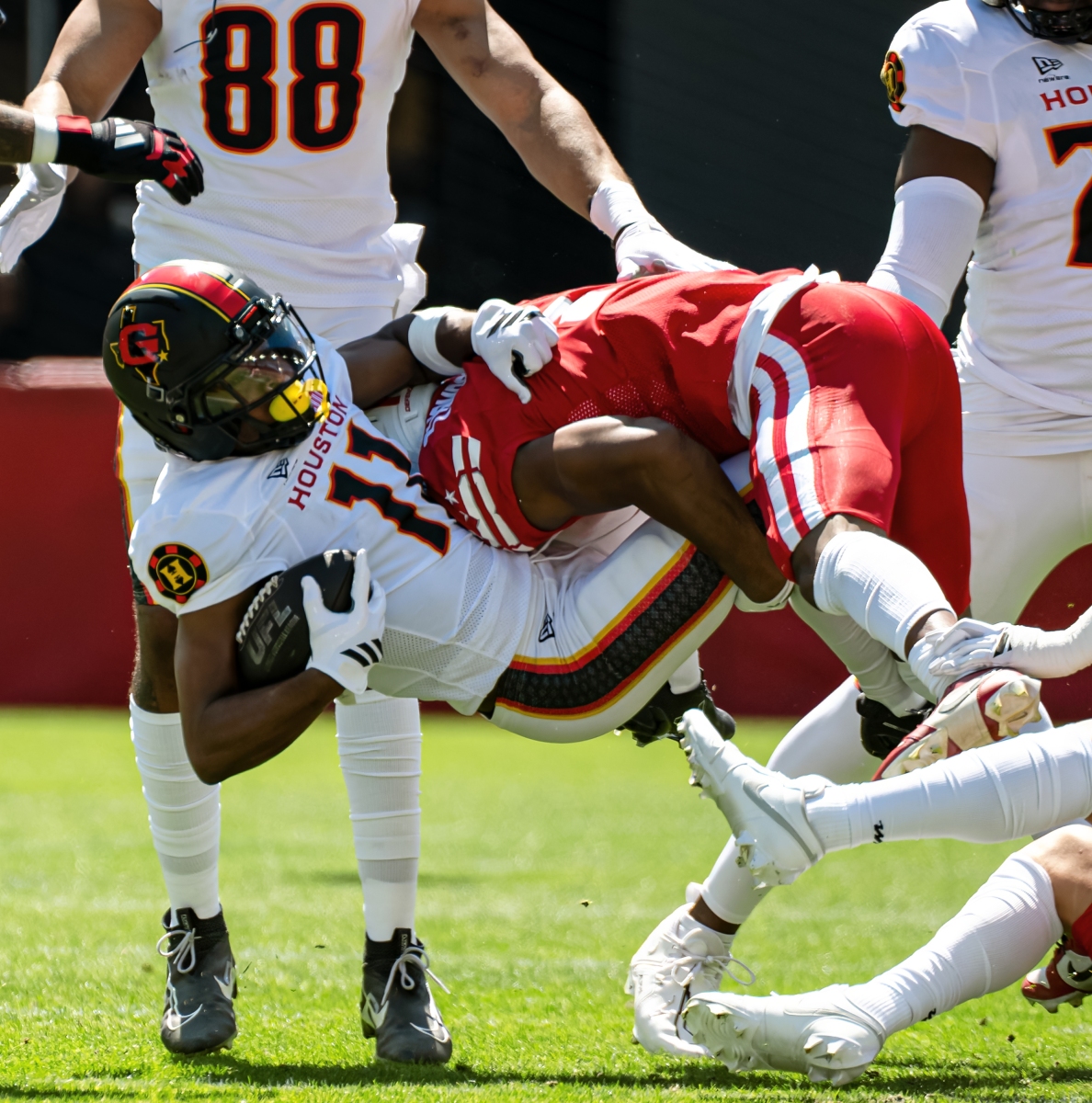 Receiving Leaders Justin Hall (HOU): 9 rec, 69 yds, 7.7 avg, 1 TD (13 targets) Ty Scott (DC): 4 rec, 49 yds, 12.2 avg Mason Fairchild (DC): 2 rec, 34 yds, 17.0 avg Lawrence Keys III (HOU): 2 rec, 33 yds, 16.5 avg Briley Moore (DC): 1 rec, 20 yds, 1 TD