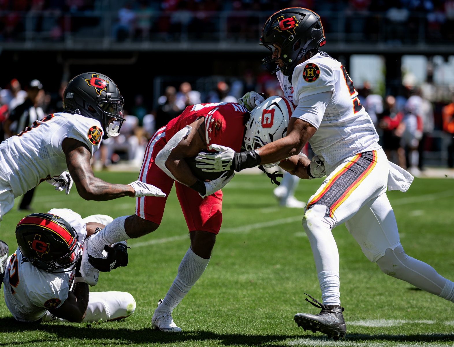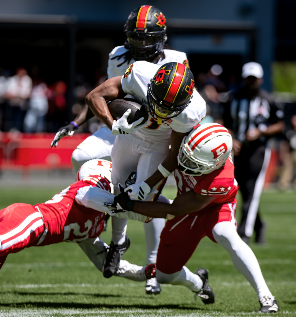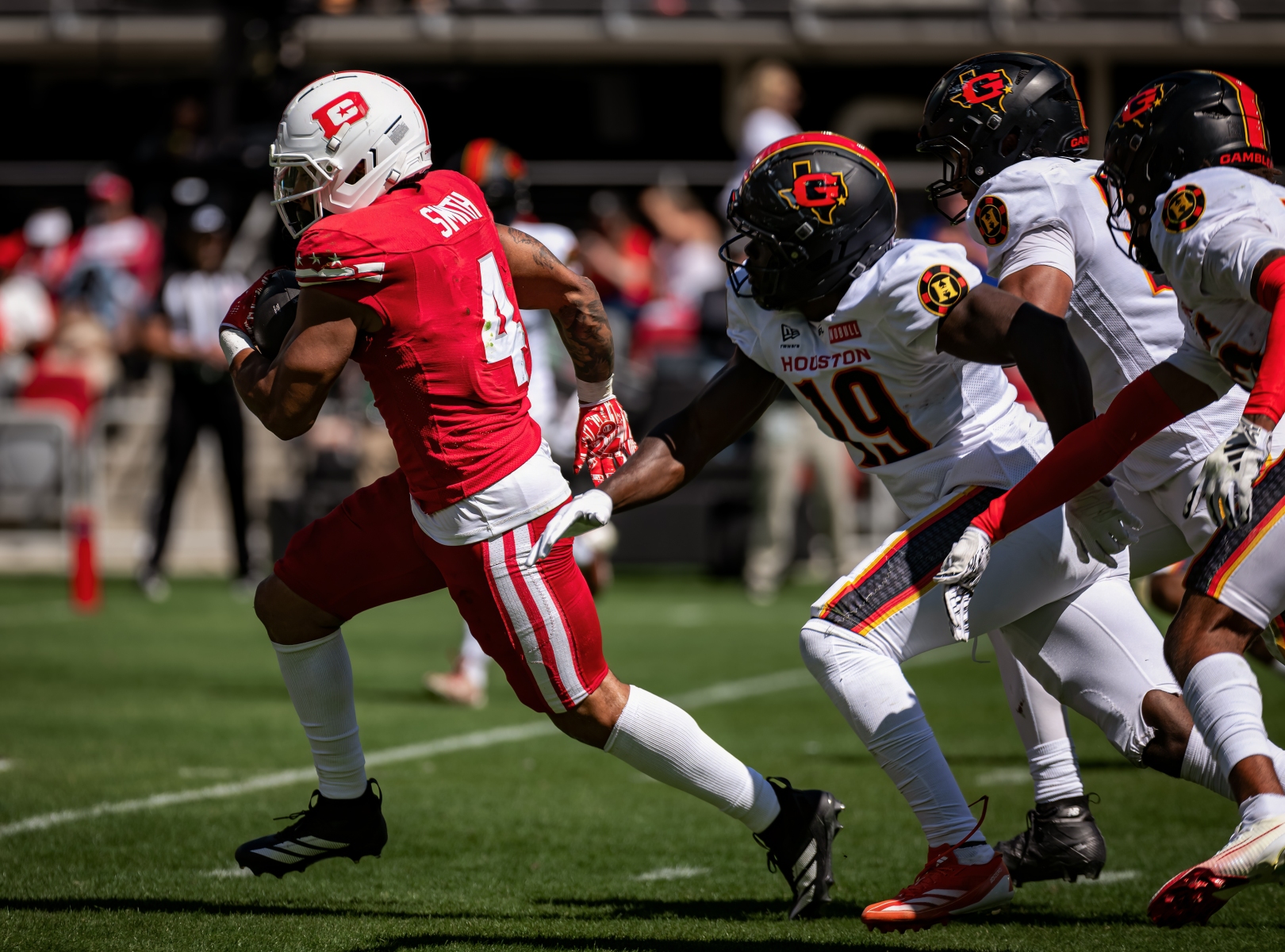DC’s ground game was the story — 27 carries, 163 yards, three rushing touchdowns, 6.0 yards per carry. Ta’amu managed the game efficiently at 15-of-27 for 173 yards and a touchdown. Tagovailoa was under siege for Houston — sacked four times, completing 52.5% of his passes for 171 yards with Hall providing the lone bright spot (9 rec, 69 yds, TD on 13 targets).