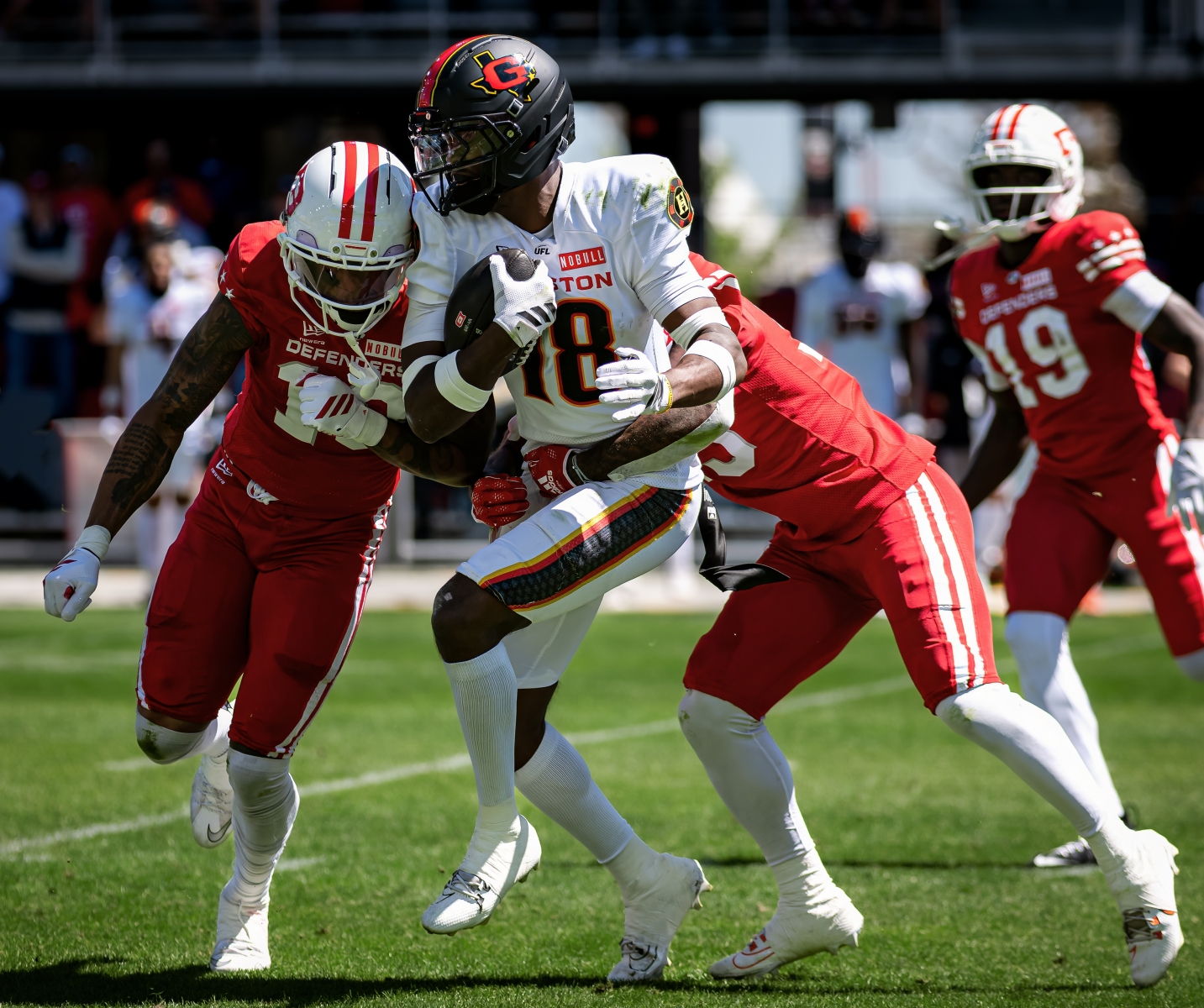 The DC Defenders didn’t just win their home opener on Saturday — they made UFL history. A 45-7 demolition of the Houston Gamblers at Audi Field is the largest margin of victory in league history, and DC’s 28-0 halftime advantage set another record. Deon Jackson broke loose on DC’s second play from scrimmage, Gareon Conley returned a pick 70 yards to the house, and a trick play TD from Briley Moore had Audi Field rocking before the half was over. This Defenders team is for real.