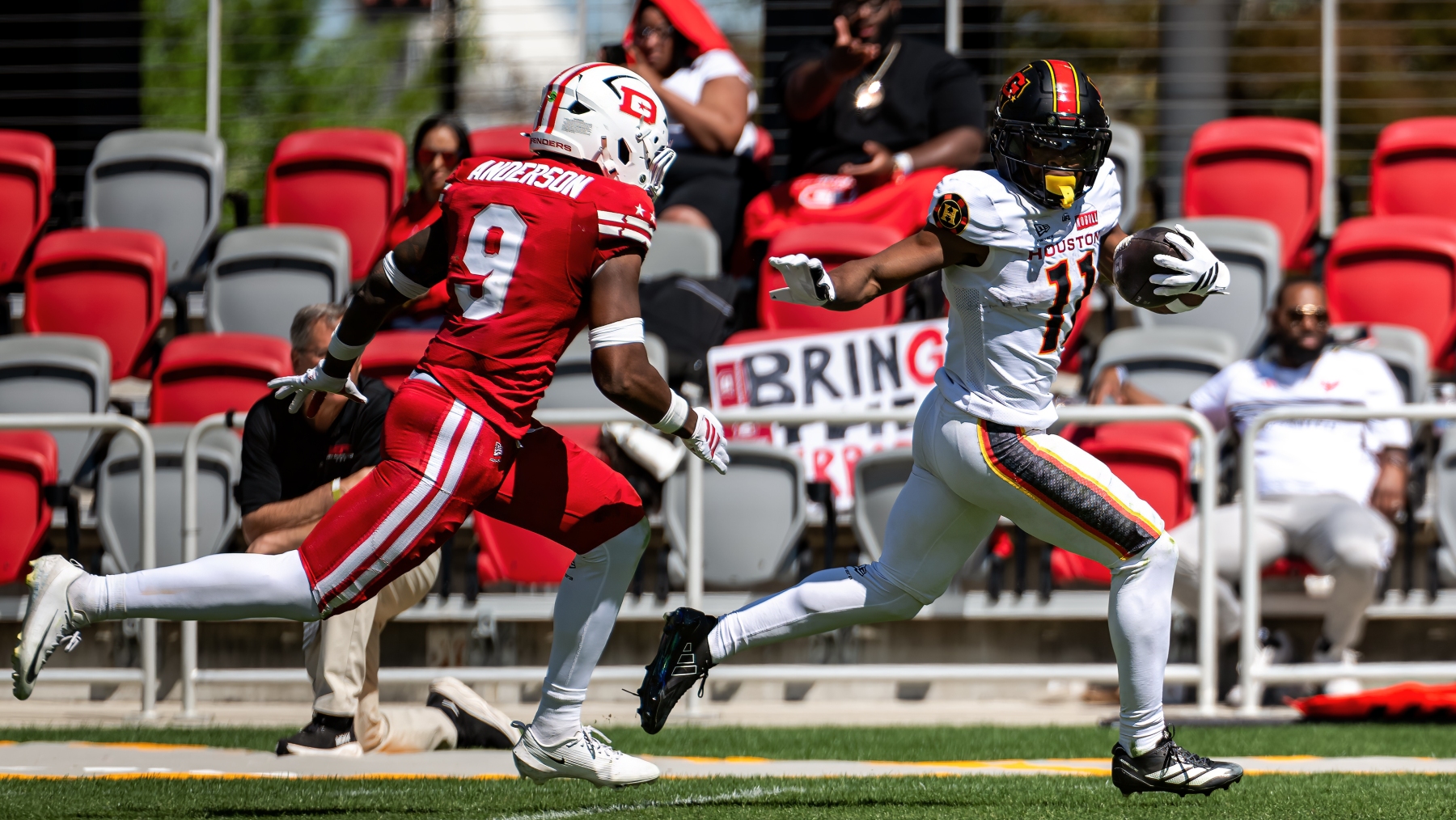 DC’s defense was dominant all afternoon — four sacks, seven tackles for loss, and five pass breakups. Gabe Taylor led with six tackles and his first sack of the season. Derick Roberson added two sacks and Boogie Basham chipped in another. McCrane was a perfect 3-for-3 on field goals and 5-for-5 on extra points. Houston never attempted a field goal and punted three times.