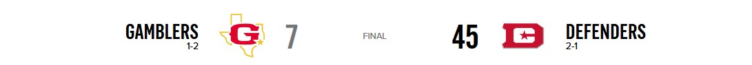 Houston Gamblers 7, DC Defenders 45 Audi Field, Washington, DC
