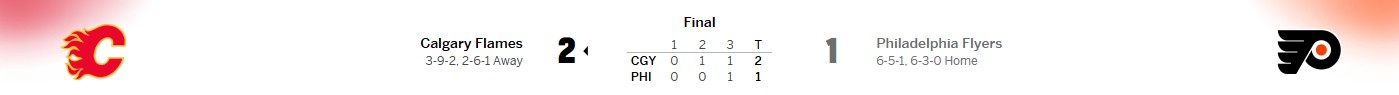 Final Score: Calgary 2, Philadelphia 1