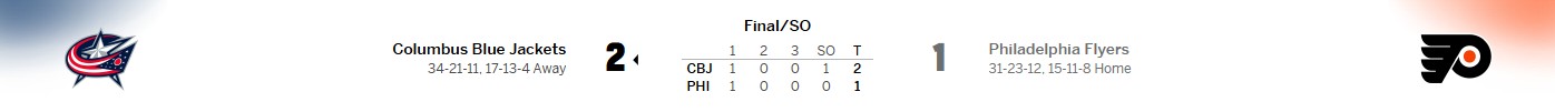 Columbus Blue Jackets 2, Philadelphia Flyers 1 (SO)