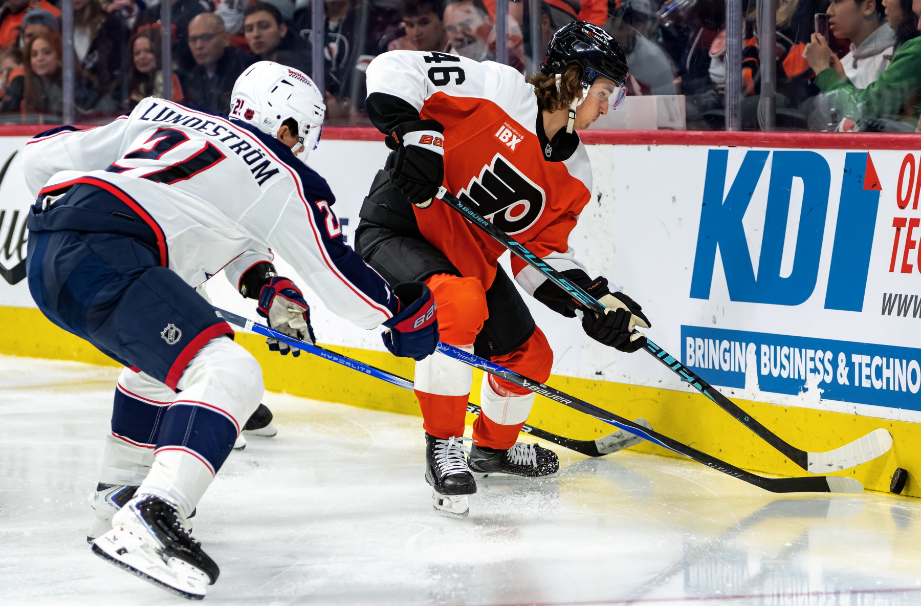Penalties: CBJ 15 min (6 infractions), PHI 9 min (9 infractions)