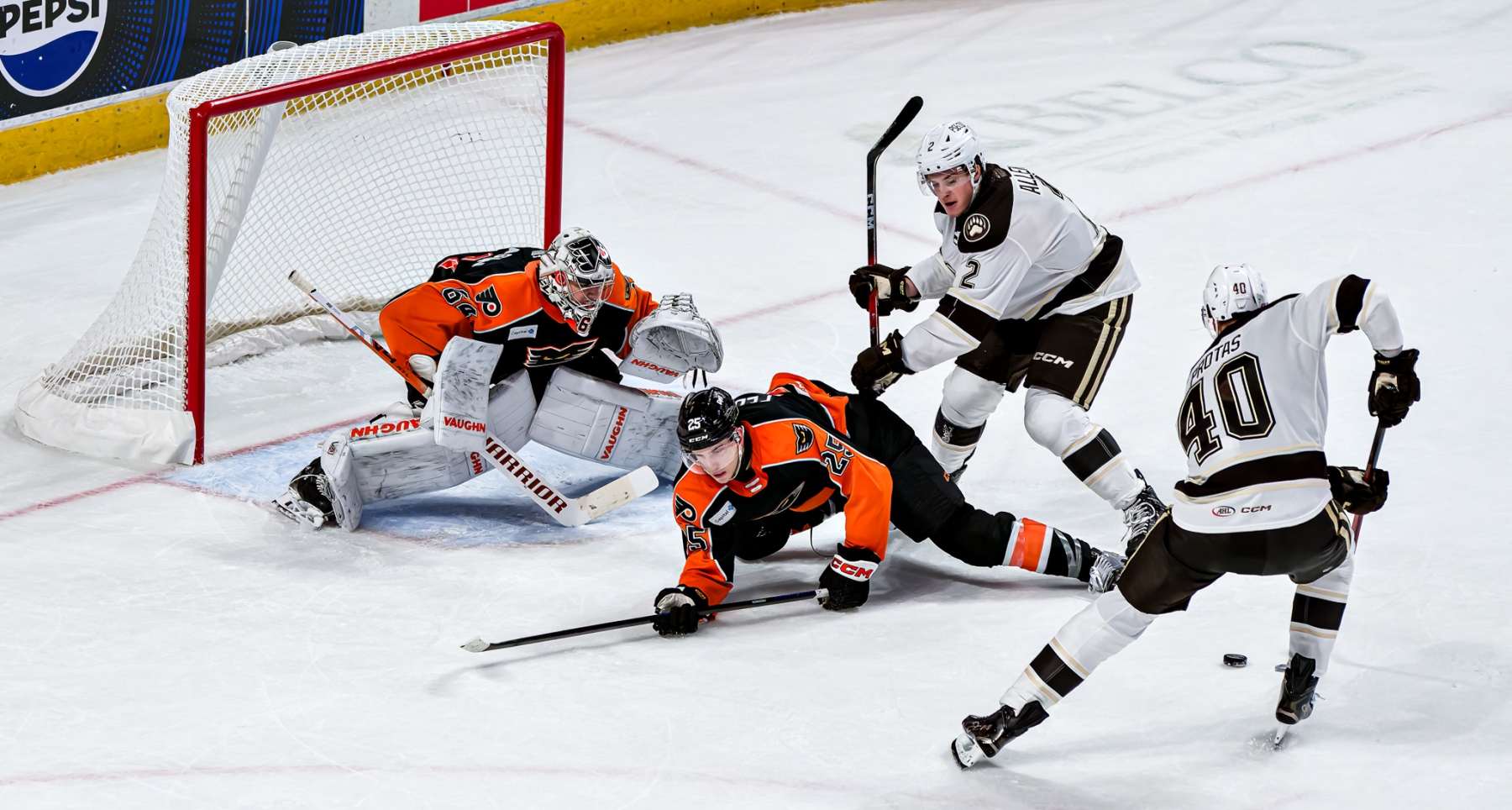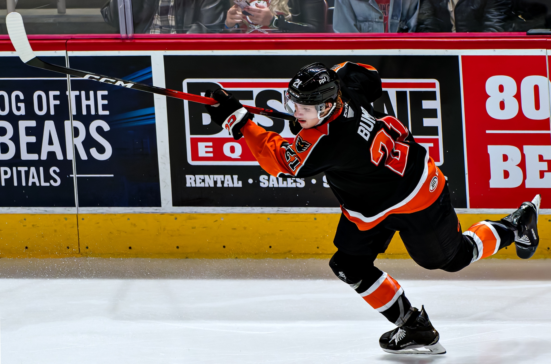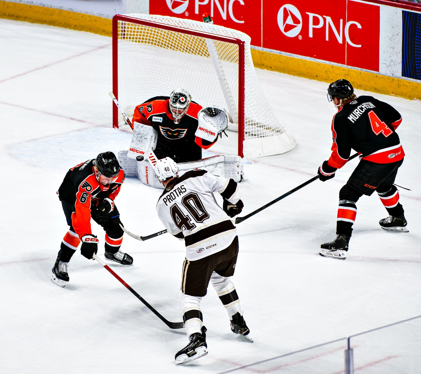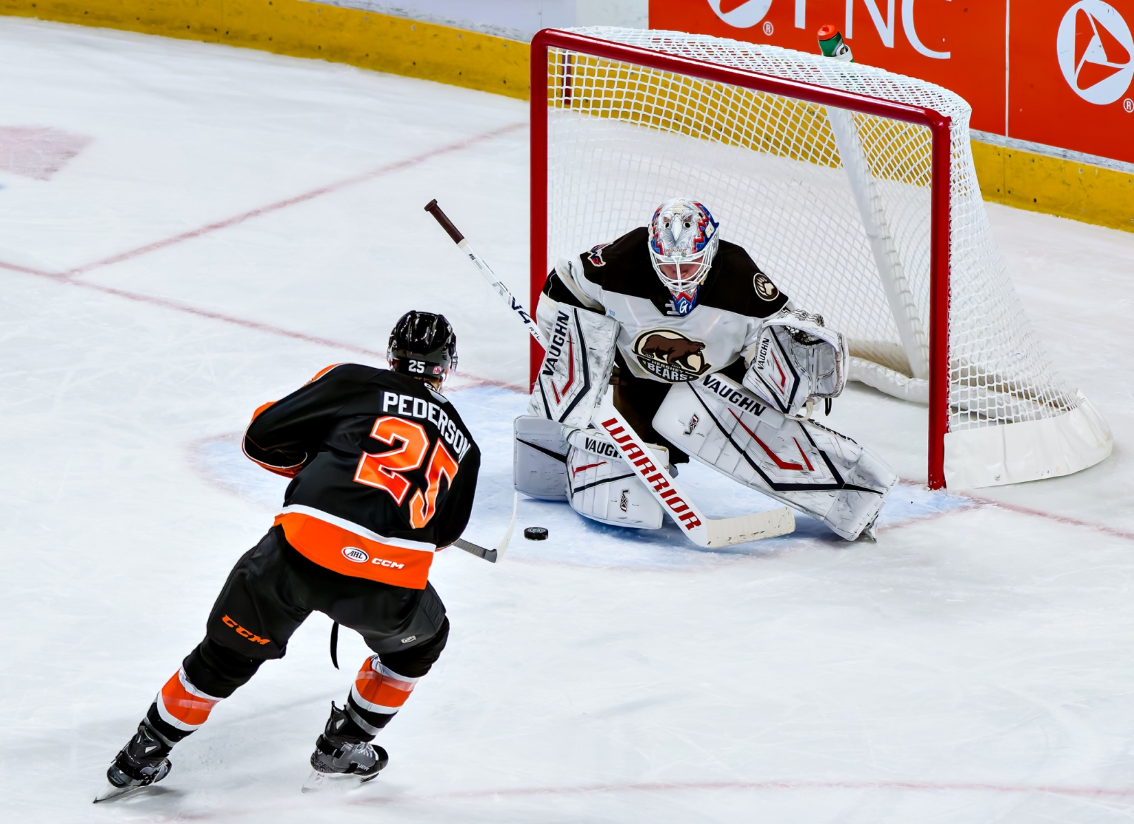 Protas, who had left the game briefly in the first period after absorbing a thunderous hit from Phantoms captain Garrett Wilson, stepped up first for the Bears. With the crowd of Halloween-costumed kids holding their collective breath, the 22-year-old Washington Capitals prospect glided in, sold a backhand, and snapped it blocker-side past Carson Bjarnason. One shot, one goal.
