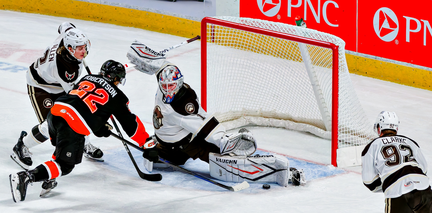 The Bears improved to 2-3-1-0 after rallying from deficits of 1-0 and 3-2, while the Phantoms dropped to 4-2-0-1 despite controlling much of the middle frame. In a game that featured just 52 combined shots and traded haymakers like a heavyweight bout, it was Hershey’s resilience—and Bjorklund’s ice-cold composure—that made the difference on Reese’s Trick-or-Treat Night.