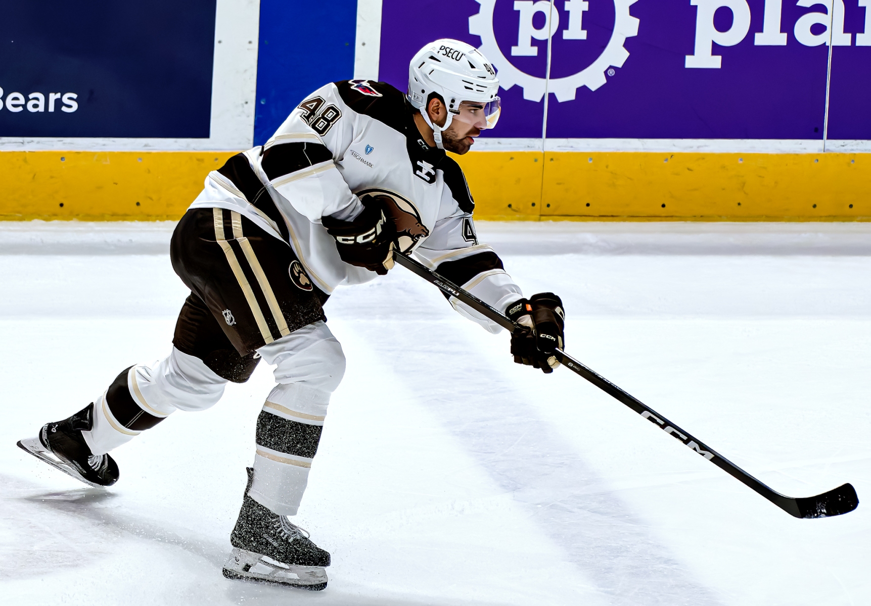 HERSHEY, PA — Twenty-four hours after watching Zayde Wisdom rip their hearts out with a late-game dagger, the Hershey Bears found redemption in the most dramatic fashion possible. Ilya Protas buried the only goal in a shootout, and rookie netminder Garin Bjorklund turned aside all three Lehigh Valley attempts to give the Bears a thrilling 4-3 victory on Saturday night at GIANT Center, salvaging a split of the home-and-home Pennsylvania rivalry series.