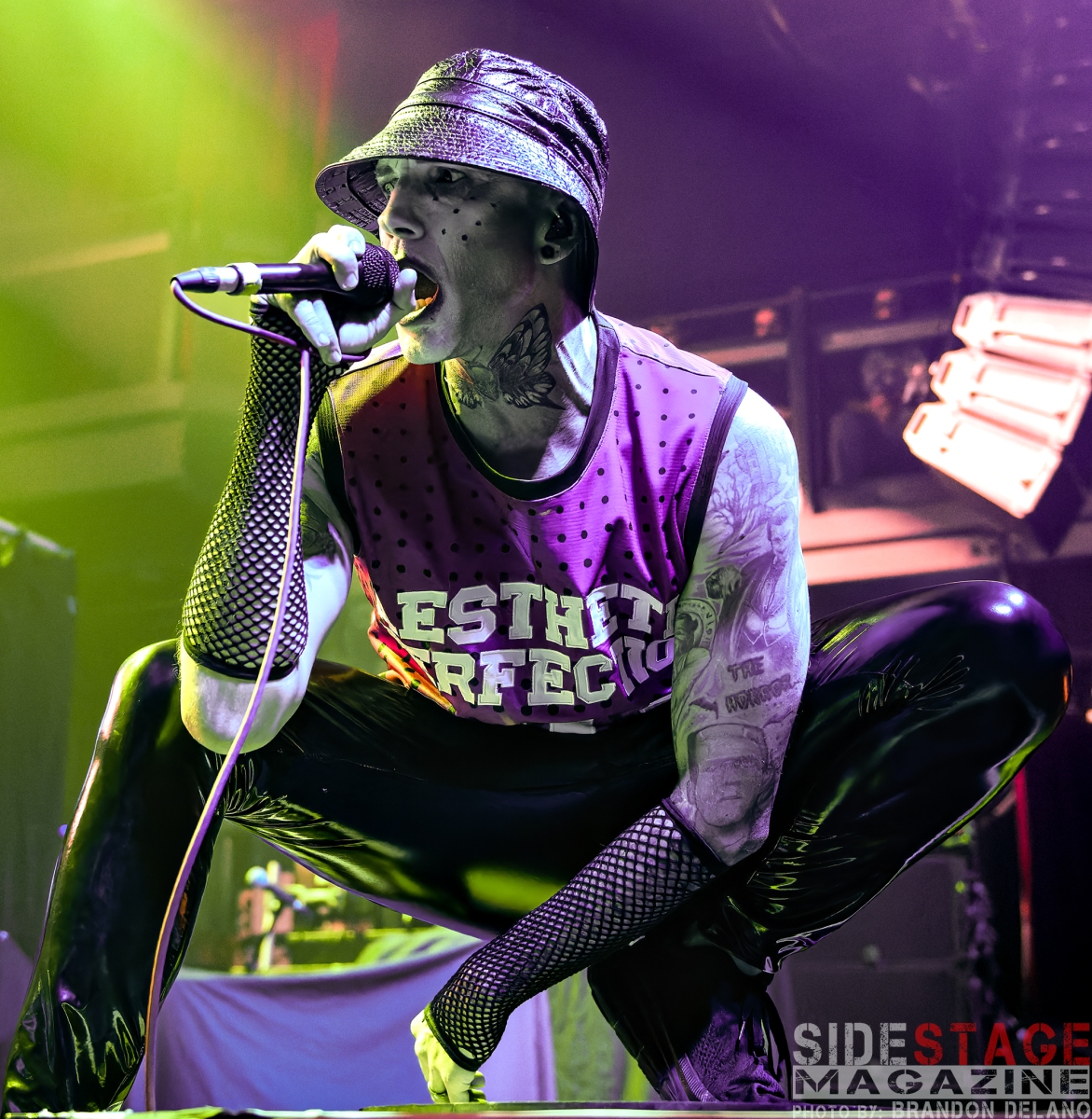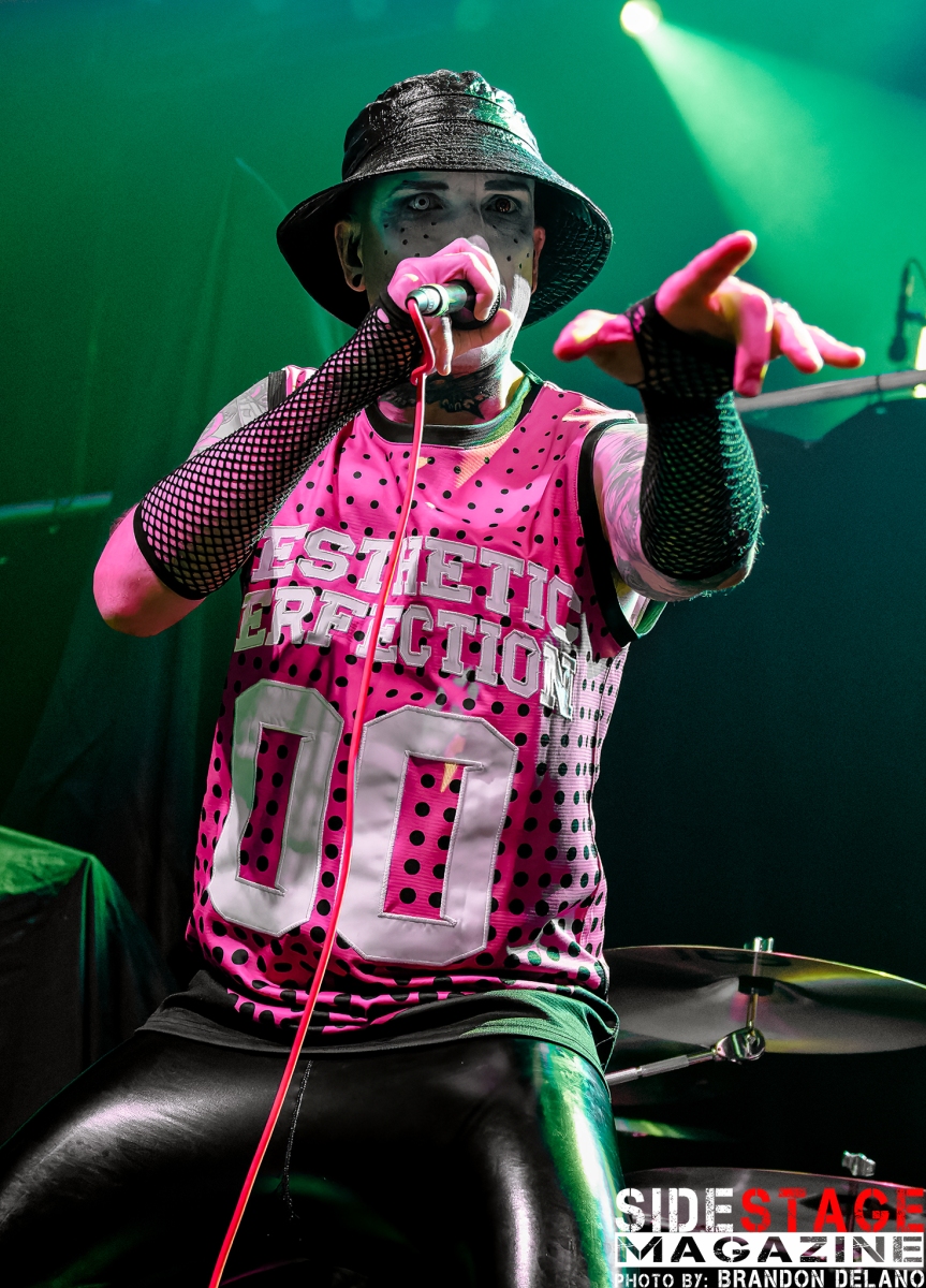 The night began with Aesthetic Perfection, an industrial pop group known for blending dark electronic beats with gothic and metal influences. Their high-energy performance featured pulsing rhythms, haunting melodies, and engaging stage presence. Songs like “Antibody” and “Spilling Blood” got the crowd moving early, creating an atmospheric vibe that perfectly set the stage for the intensity to come.