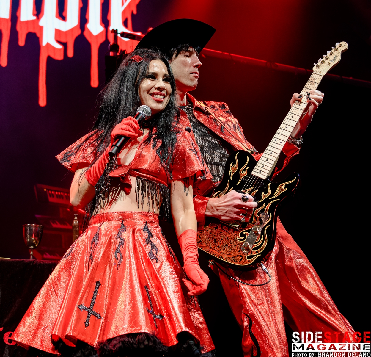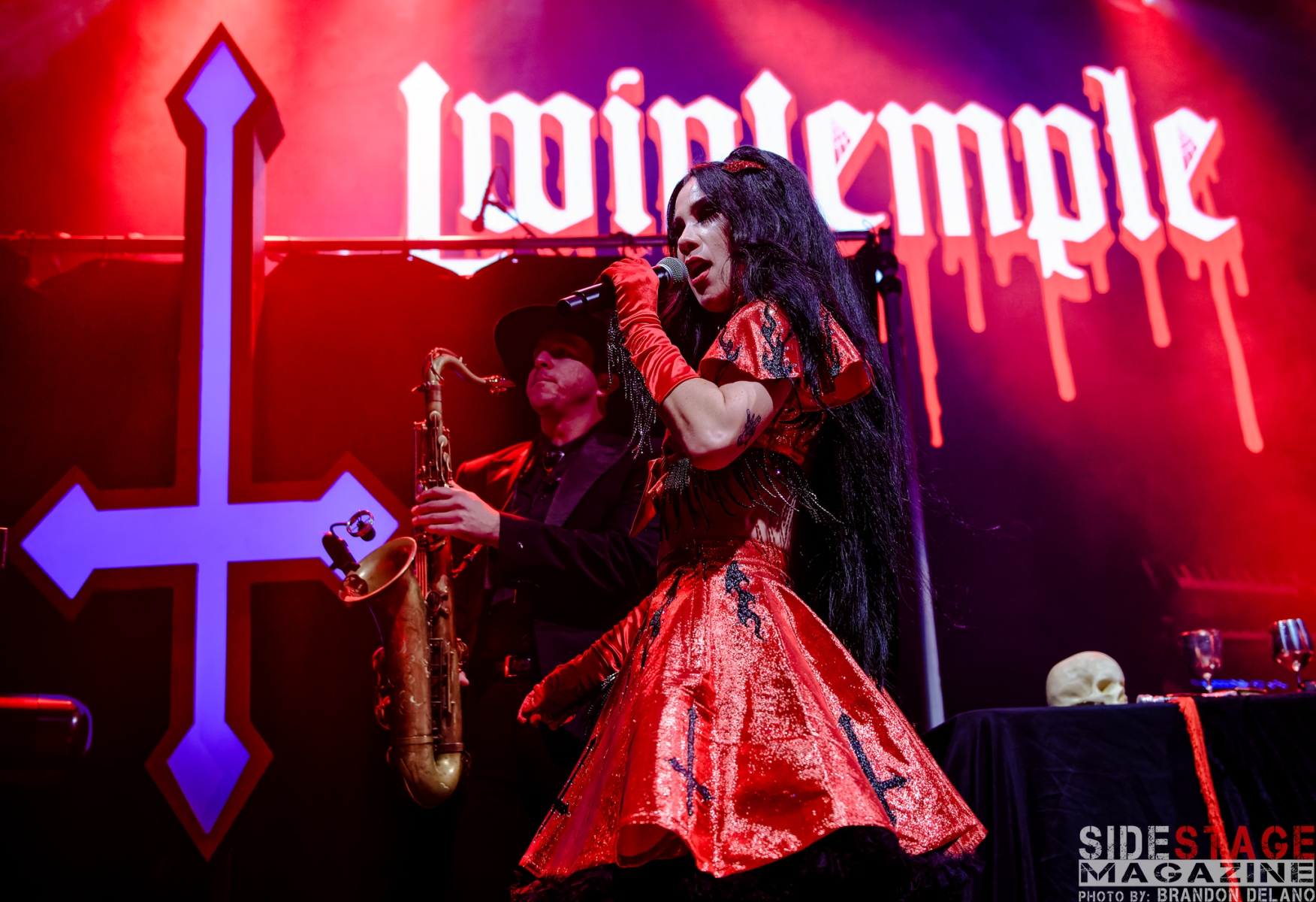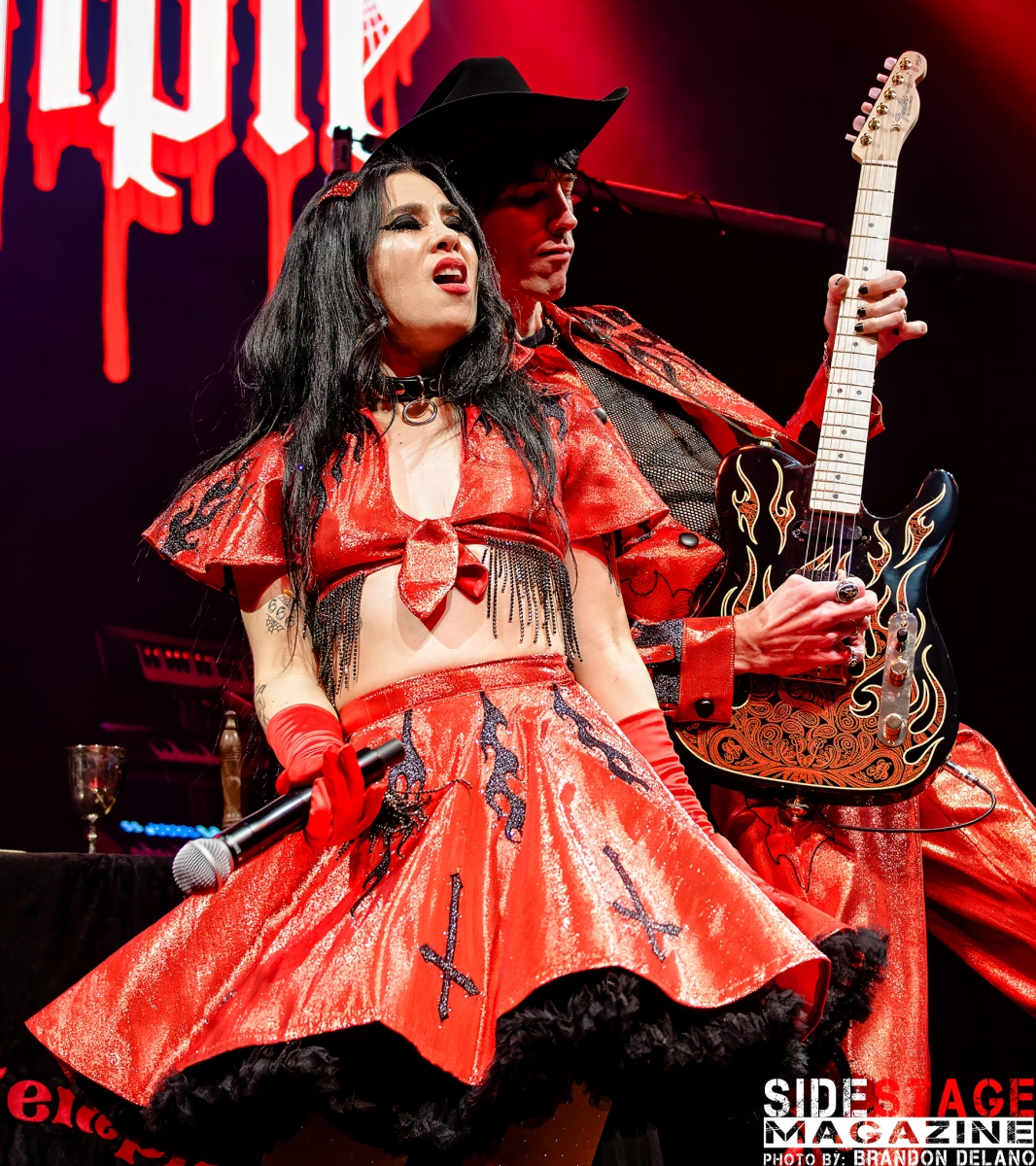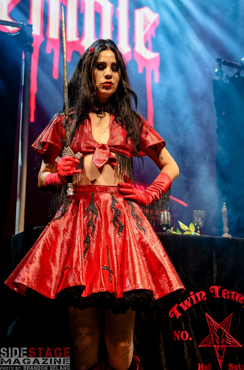 Twin Temple, the self-proclaimed “Satanic doo-wop” duo, brought an unconventional yet captivating vibe to the show. Their blend of 1950s-style doo-wop with occult themes created an intriguing contrast. Songs like “Satan’s a Woman” and “The Devil (Didn’t Make Me Do It)” filled the venue with an eerie, vintage energy. The duo’s theatrical presence, complete with retro-inspired outfits and ritualistic performance elements, perfectly set the tone for a night steeped in gothic and dark themes. Their unique combination of old-school rock and roll with Satanic imagery provided a fascinating and unexpected start to the show.